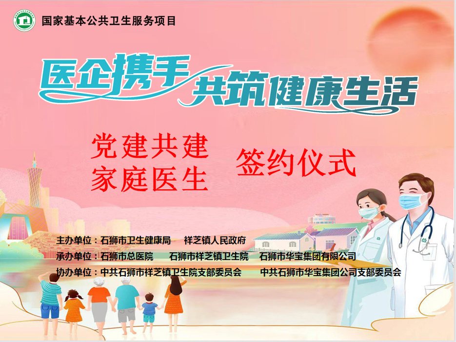 重要會議解讀 2023年5月12日,石獅市華寶集團有限公司與祥芝鎮(zhèn)衛(wèi)生院舉行了《石獅市祥芝鎮(zhèn)衛(wèi)生院家庭醫(yī)生簽約協議》和《黨建共建協議書》簽約儀式。華寶集團副總經理吳世金和祥芝鎮(zhèn)衛(wèi)生院副院長王明云出席儀式并簽約。華寶集團黨支部書記、工會主席師體偉和祥芝鎮(zhèn)衛(wèi)生副院長王明云分別發(fā)表講話。