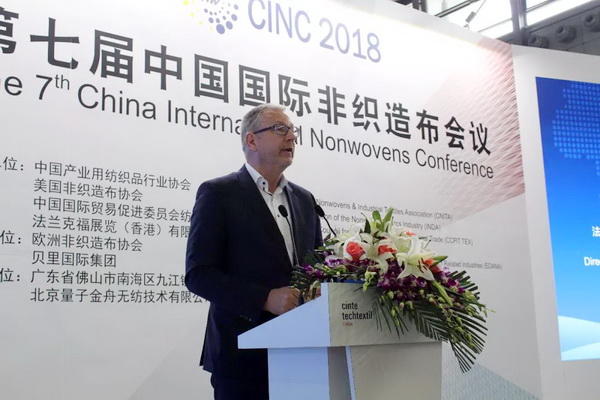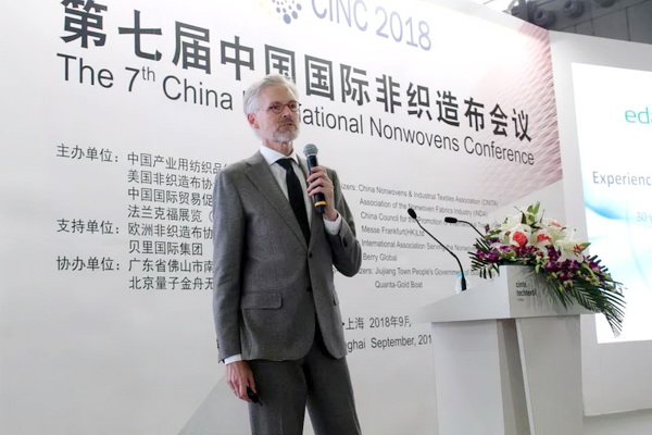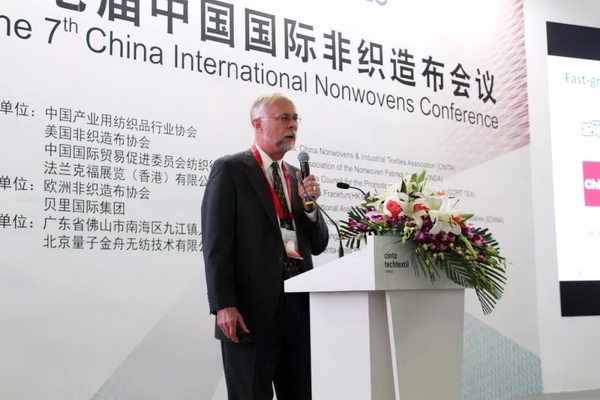 法蘭克福展覽有限公司產業用紡織品及紡織加工品牌總監Michael. Janecke致辭時表示,CINTE一直致力于為全球產業用紡織品企業搭建公開公平公正的交流平臺,本屆展會,海外展商的數量達到歷史新高,他們也帶來了領先的創新產品,可以與國內產業用紡織品企業進行更全面的貿易交流。盡管當前國際形勢比較復雜,但非織造材料依舊保持了良好的發展前景,市場需求不斷提升,市場驅動后勁十足。 Michael Janecke表示:“目前,70%功能性非織造材料的功能尚待完全開發,雖然說網絡媒體日漸發達,但我們依舊需要面對面的交流,去碰撞出更多的合作伙伴和創新想法,今天召開的第七屆中國國際非織造布會議將從市場趨勢和產品應用兩個方面探討行業發展,希望對于企業布局未來發展提供良好幫助?!?br />
