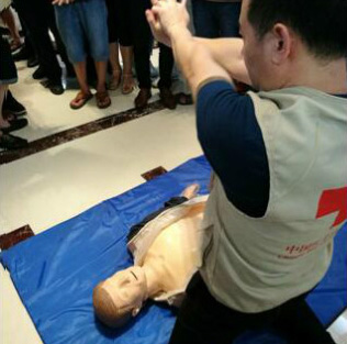 遇到倒地需要急救的病人 1、首先,立即撥打120,說清病人癥狀、發(fā)病原因和地點。 2、沉著觀察,辨別病人脈搏(心跳)是否完全停止,是否還有呼吸,并大聲呼喊病人(如在心臟沒有停跳時進行按壓,會引起心律紊亂,反而威脅生命)。 3、將病人仰臥平放(頭和胸同水平)在硬板床或硬平地上(軟床進行心臟按壓無效)。 4、搶救者應緊靠患者胸部一側,可根據患者所處位置的高低采用跪式或站式等體位;(以保證按壓時力量垂直作用于胸骨,只有壓迫胸骨才能在胸骨之間使心臟受到擠壓)。 5、兩只手食指相疊,手指翹起(以免壓到胸壁),用手掌根按在病人胸骨上2/2與1/3交界處(兩乳頭連線與胸骨交叉點處,即為心臟按壓部位),雙臂肘關節(jié)伸直,肩手保持垂直靠上身重量用力做快速按壓,使胸骨下壓深度為4-5厘米,按壓頻率為80-100次/分,有節(jié)奏地一壓一松,按壓與放松時間大致相等,盡量保證每次按壓后的胸部回彈,并且手掌根不離開胸壁以防錯位,盡可能連續(xù)按壓不中斷。 6、一直按到病人恢復心跳才停下,不要輕易放棄,直到急救人員趕來接手(只要能觸到一點搏動,就是心跳開始的證據,應立即停止心臟按壓以免引起心跳紊亂,同時必須注意觀察,做好再次按壓準備)。 7、如胸外心臟按壓的對象是嬰兒,其操作與成人及兒童有一定區(qū)別。嬰兒的按壓部位在胸骨上兩乳頭連線與胸骨正中線交界點下一橫指,搶救者用中指和無名指按壓,按壓深度為2厘米,按壓頻率100次/分鐘以上,不可用力過猛。